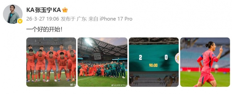 博鱼体育-贡献传射!张玉宁社媒庆祝:一个好的开始! 频道:西甲 日期:2026-04-10 12:26:35 浏览:2 3月27日讯 在国足2-0击败库拉索后,张玉宁更新了个人社媒。本场比赛张玉宁先是在上半场助攻韦世豪破门,帮助国足1-0领先,下半场他又打入一球,帮助国足2-0赢下比赛。赛后,他在社媒晒照并配文写道:“一个好的开始!” 上一篇:赵丽娜报名越野跑:在国家队时讨厌跑步,现在上山练完太棒了 相关文章 博鱼体育-贡献传射!张玉宁社媒庆祝:一个好的开始! 赵丽娜报名越野跑:在国家队时讨厌跑步,现在上山练完太棒了